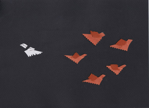 Si effettua componendo tra loro dei ritagli di carta, stoffa o altri materiali, l’effetto è quindi bidimensionale. Le figure dei personaggi, una volta composte, possono essere unite per sovrapposizione oppure per renderle più stabili tramite piccoli fermacampione. Successivamente vengono poi riprese dall’alto verso il basso, oppure per ottenere l’effetto tridimensionale, adattate verticalmente su una camera multipiano.